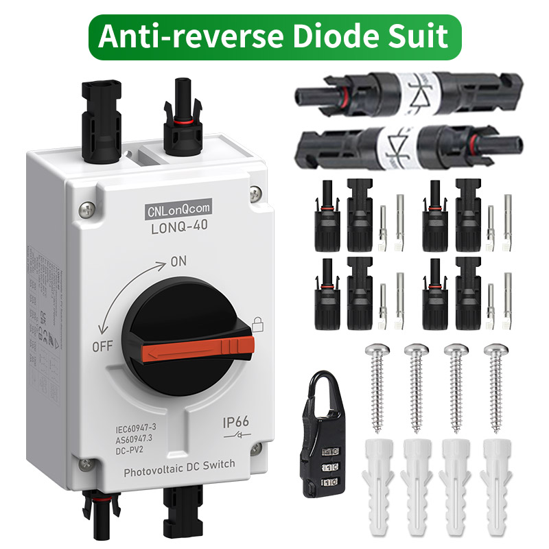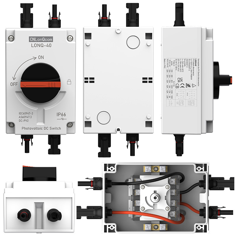 ● A CNLonQcom 1500 V 32A-ig terjedő PV szakaszolókapcsolók gyártására szakosodott gyártó, amelyet lakossági vagy kereskedelmi fotovoltaikus rendszerekhez terveztek 1 kW-tól 20 kW-ig. Ezek a kapcsolók a napelemek és a töltésvezérlők, a napelemek és az inverterek, vagy maguk a napelemek közé való beépítésre szolgálnak.